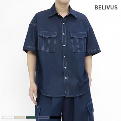 빌리버스 남자 반팔 셔츠 BRI036 스티치 오버핏 남방